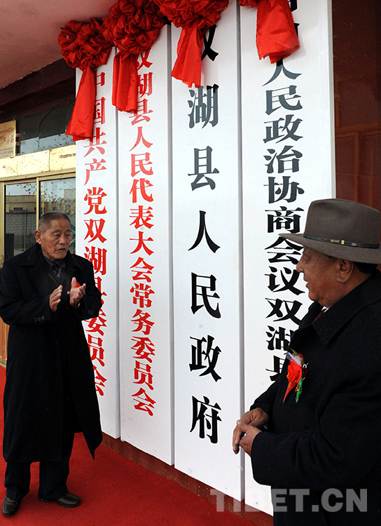 這是洛桑丹珍(左)在為雙湖設縣掛牌(唐召明2013年7月26日攝)