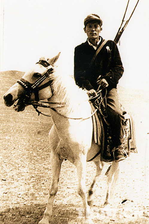 這是時任申扎縣縣長的洛桑丹珍騎馬,準備走進藏北無人區(qū)考察(唐召明提供,1974年攝)