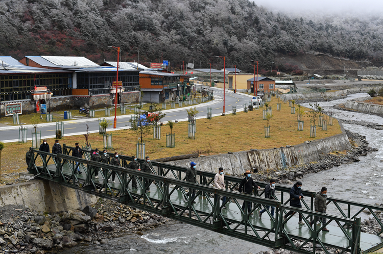 圖為護(hù)邊員在巡邊路上