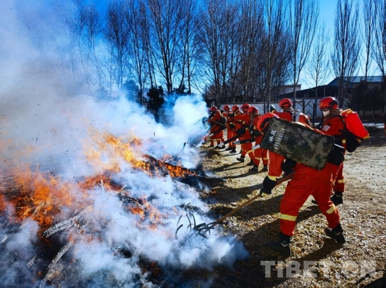 圖為滅火救援訓(xùn)練 攝影:洛桑頓珠