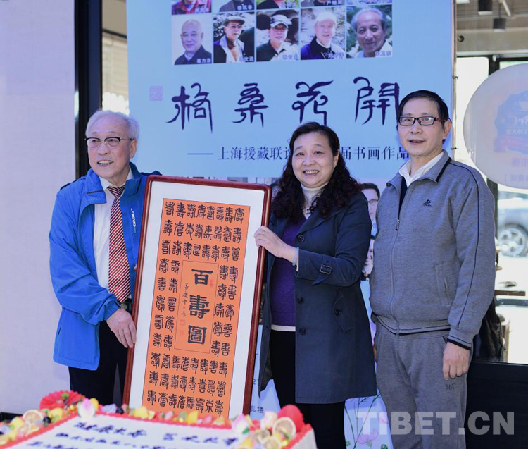 開幕式當(dāng)天,恰逢張先生八十大壽,書畫展組委會(huì)特地送上蛋糕祝賀,徐匯區(qū)書畫協(xié)會(huì)也以一幅《百壽圖》向張先生表達(dá)敬意,祝他“健康長(zhǎng)壽、藝術(shù)長(zhǎng)青”。(中國(guó)西藏網(wǎng) 文/葛榮江)