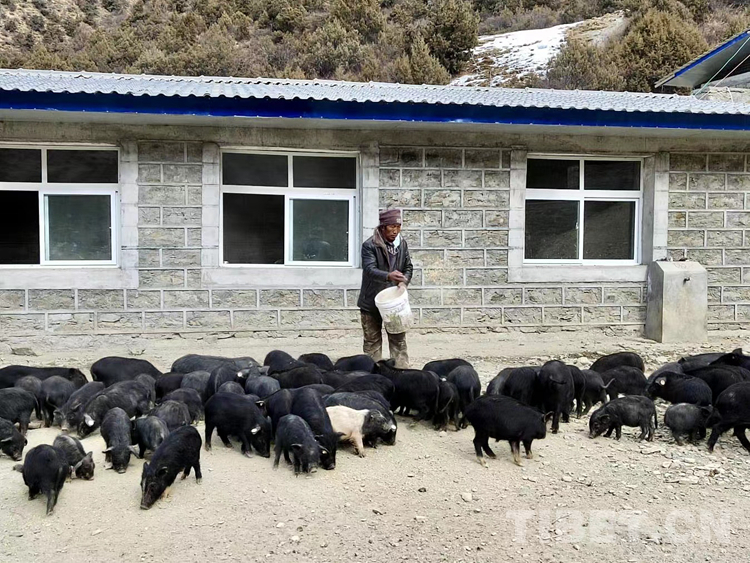 圖為朗縣登木鄉(xiāng)崩達(dá)村藏豬養(yǎng)殖場
