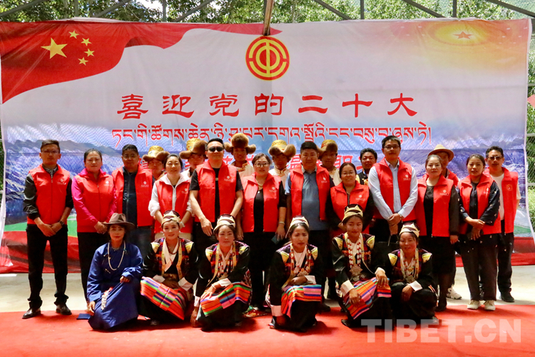 圖為朗縣各族干部群眾通過文藝演出喜迎黨的二十大