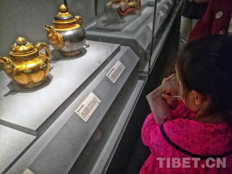 圖為一個(gè)小女孩在《天路文華—西藏歷史文化展》展品前做筆記 攝影:李元梅