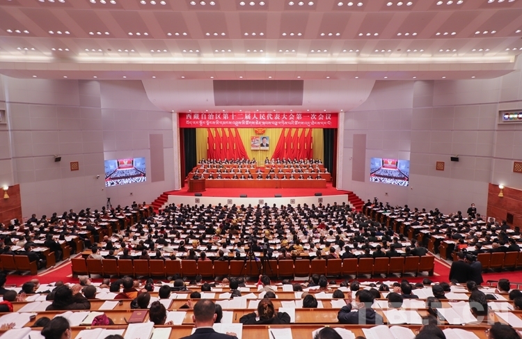 圖為西藏自治區(qū)十二屆人大一次會議現(xiàn)場 攝影:賈華加