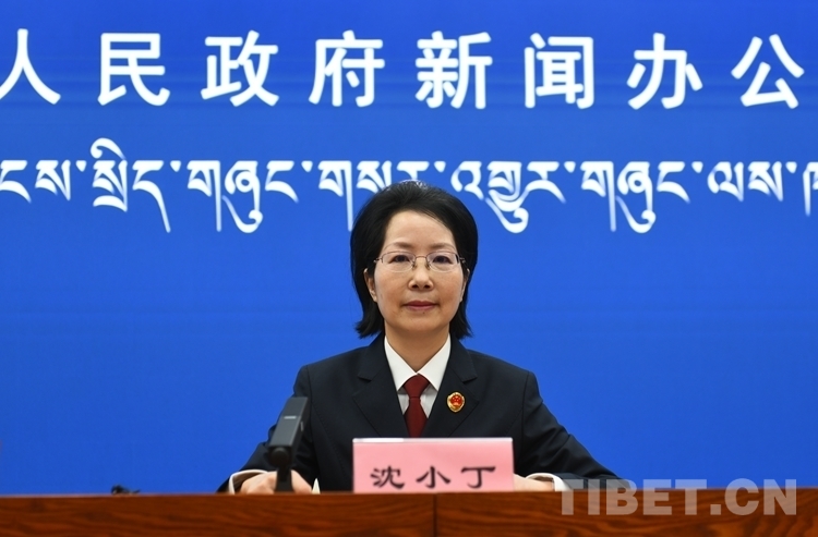 圖為西藏自治區(qū)人民檢察院檢委會專職委員、新聞發(fā)言人沈小丁介紹相關(guān)情況