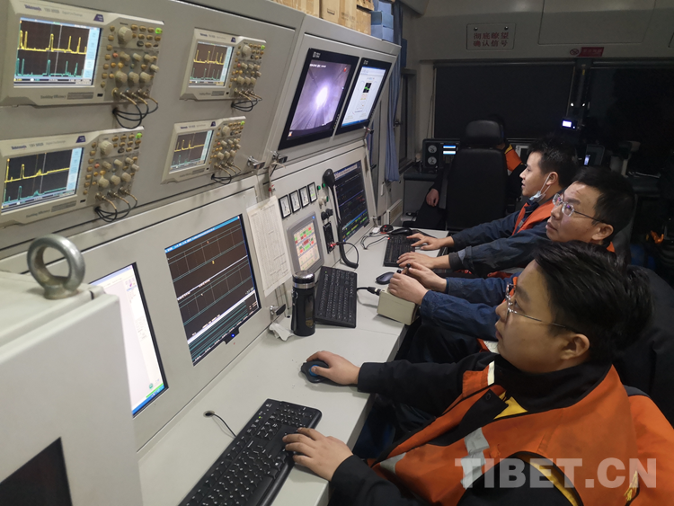1月24日早上9時(shí)28分,一輛藍(lán)色的鋼軌探傷車(chē)緩緩駛出拉薩站前往日喀則西站,全程保持小于70公里每小時(shí)的速度前進(jìn),目的是精確檢測(cè)拉日鐵路的鋼軌是否存在內(nèi)部損傷,為高原鐵路鋼軌體檢。