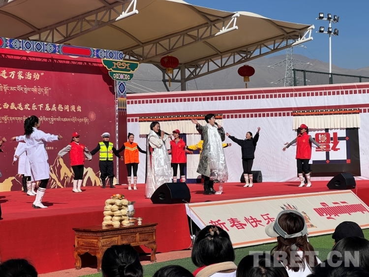 中國西藏網(wǎng)訊 正值早春二月,藏歷水兔新年即將到來。2月19日上午11:30,由中國文學藝術(shù)界聯(lián)合會、中國電影家協(xié)會、西藏自治區(qū)黨委宣傳部聯(lián)合主辦的“我們的中國夢——文化進萬家”送歡樂下基層慰問演出活動在西藏自治區(qū)拉薩市堆龍德慶區(qū)濱河體育公園舉行?! ?/p>