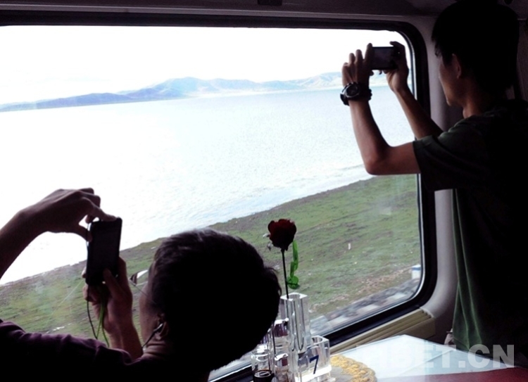 這是京藏列車通過西藏錯那湖時,旅客們紛紛用手機(jī)拍攝美景(唐召明2012年8月12日攝)