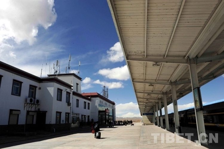 這是列車到達(dá)那曲火車站(唐召明2014年4月8日攝)