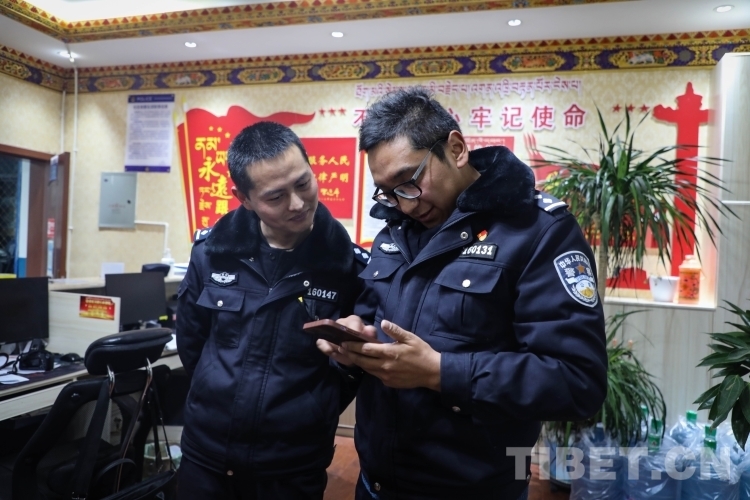 “每天早晨,我要做的第一件事就是和雙聯(lián)戶長了解轄區(qū)內(nèi)前一天的治安情況,然后開始社區(qū)入戶檢查、商場(chǎng)巡邏?!庇浾吡私獾?,藏歷年期間沖賽康商場(chǎng)商戶人員眾多,巡邏起來費(fèi)時(shí)費(fèi)力,沖賽康結(jié)束營業(yè)后,還需要清理清場(chǎng)?!叭绻ぷ鞯教恚乙话憔驮谵k公室住下了。”對(duì)于這樣忙碌的執(zhí)勤工作,多吉江村早已習(xí)以為常。
