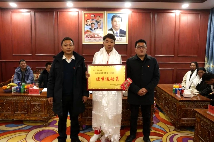 中國西藏網(wǎng)訊 近日,西藏自治區(qū)那曲市比如縣在夏曲鎮(zhèn)舉行歡迎越野滑雪國家運動員次仁占堆榮歸故鄉(xiāng)座談會。家鄉(xiāng)父老鄉(xiāng)親向次仁占堆回到家鄉(xiāng)表示熱烈歡迎,向其頒授“2023年度榮譽禮贊(國家級)優(yōu)秀運動員”榮譽牌。