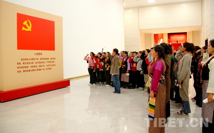 圖為“2023年西藏基層?jì)D聯(lián)干部赴京學(xué)習(xí)參觀團(tuán)”成員們在中國共產(chǎn)黨歷史展覽館重溫入黨誓詞 攝影:劉莉