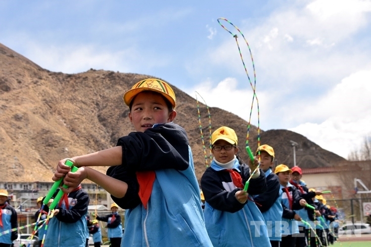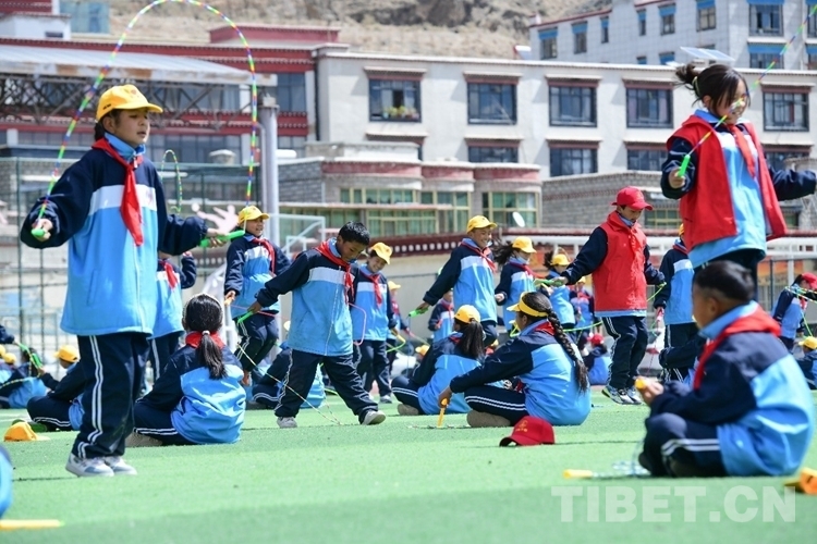 圖為活動(dòng)現(xiàn)場(chǎng)學(xué)生在學(xué)跳繩 攝影:次旦拉姆