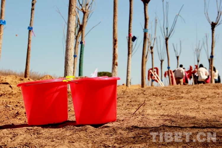 圖為多杰與北穆家峪村的回族老爺爺一起在同心林中種下了一棵粗壯的國(guó)槐 攝影:劉莉