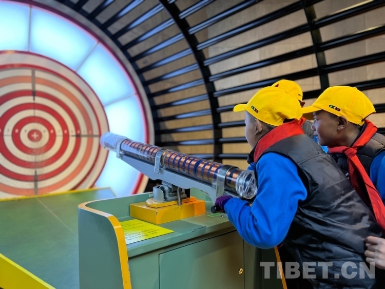 在講解員的帶領(lǐng)下學(xué)生們來到科技館,這里包括藏地智慧、科技樂園、科技前沿、體驗世界屋脊等4個主題展區(qū),主要展示古老的西藏科技智慧、人類取得的科技成就及基礎(chǔ)科學(xué)知識、科技促進人類的發(fā)展及西藏的開發(fā)建設(shè)、西藏高原生存環(huán)境的內(nèi)容。