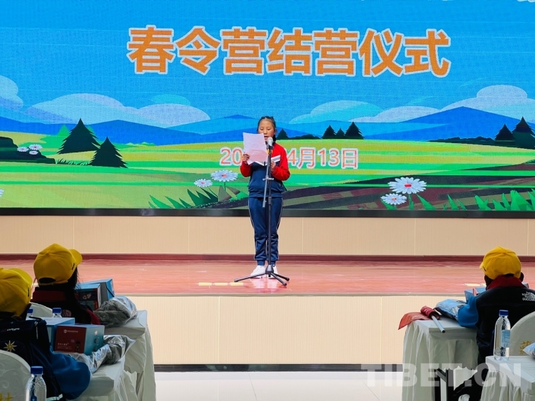 圖為多白鄉(xiāng)學生代表旦增康卓致謝現(xiàn)場 攝影:德吉卓瑪