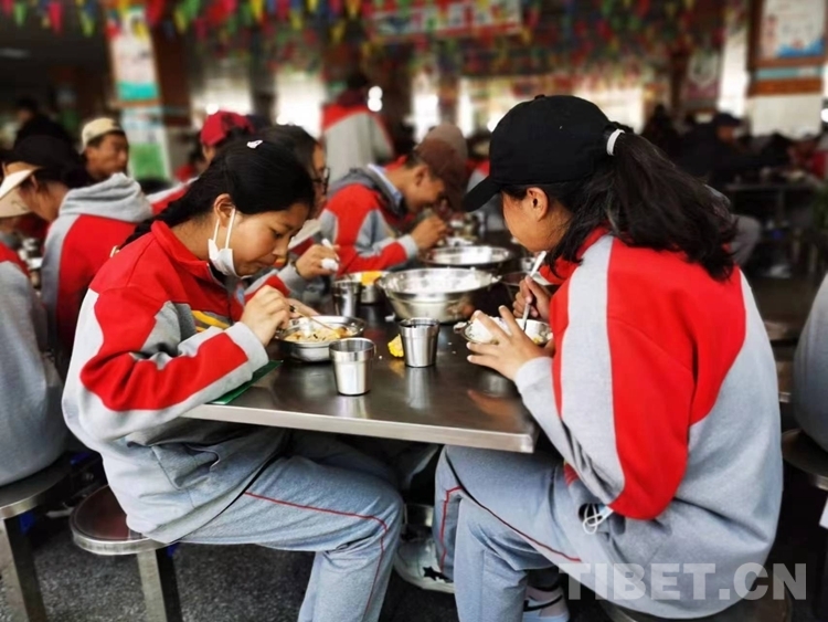孩子住在學(xué)校,家長最不擔(dān)心的就是飲食問題,在“三包”政策下,學(xué)校食堂免費日常供應(yīng)肉蛋奶、蔬菜、水果,營養(yǎng)配餐不僅讓學(xué)生吃得飽,而且吃得有營養(yǎng)。同時,學(xué)校每天還提供糌粑、酥油茶、清茶等西藏傳統(tǒng)食品。