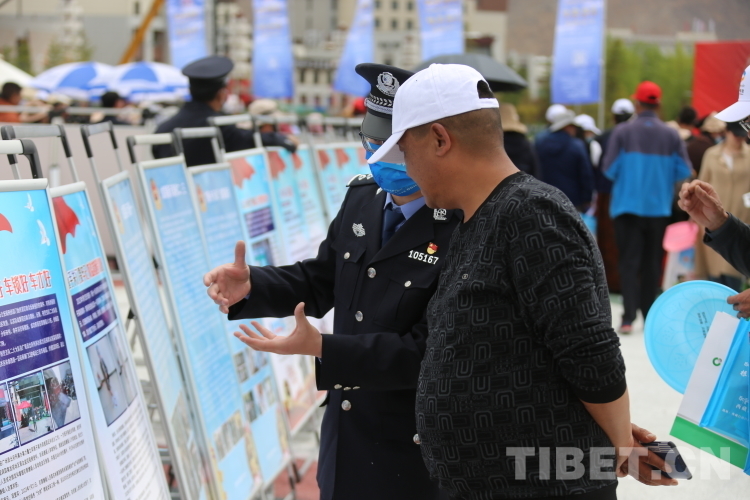 圖為在此次集中宣傳活動中,西藏自治區(qū)公安廳展位前,民警向群眾宣傳打擊和防范經(jīng)濟(jì)犯罪相關(guān)知識 攝影:王佳豪