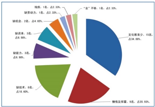 圖為114戶農(nóng)牧民對貧困根源首選項的結(jié)構分布圖