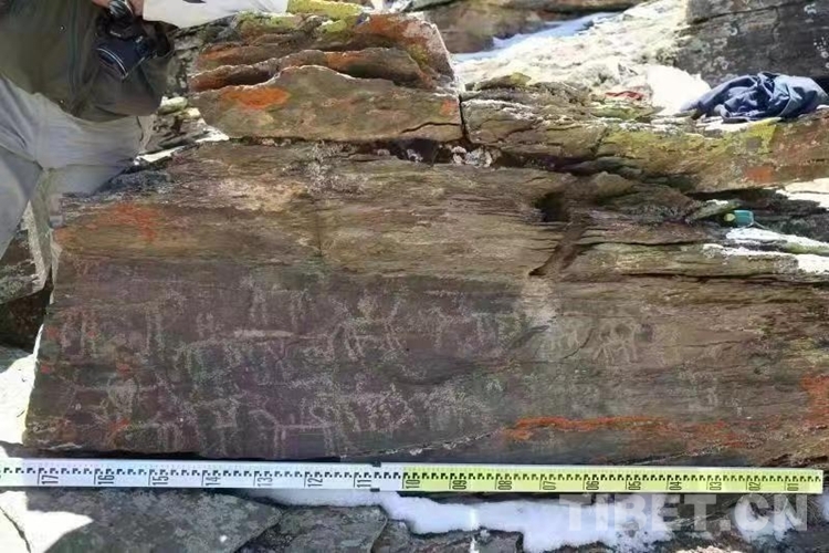 中國(guó)西藏網(wǎng)訊 5月26日,西藏自治區(qū)日喀則市江孜縣不可移動(dòng)文物普查組在江孜縣境內(nèi)首次發(fā)現(xiàn)早期巖畫地點(diǎn),該巖畫處在約海拔5200米的山麓上,分布在8處崖面上,巖畫圖像中出現(xiàn)46個(gè)騎馬人,其中22人持有弓箭,5人有持矛,還有4座早期佛塔和“萬(wàn)字符”1個(gè),表現(xiàn)出狩獵、爭(zhēng)斗和信仰等古代生活場(chǎng)景。