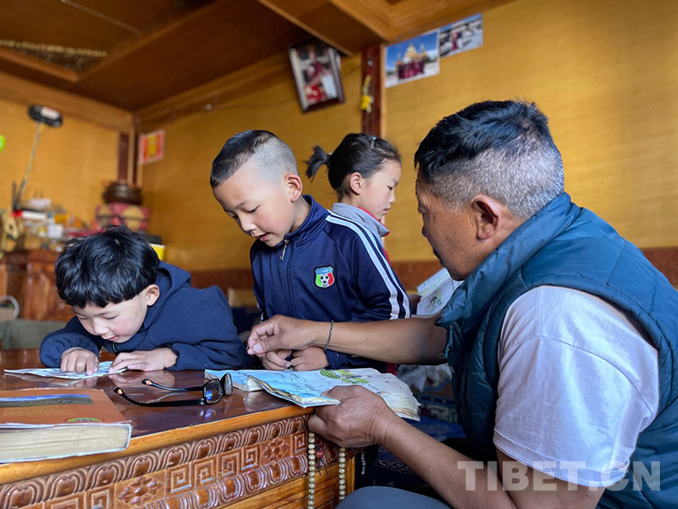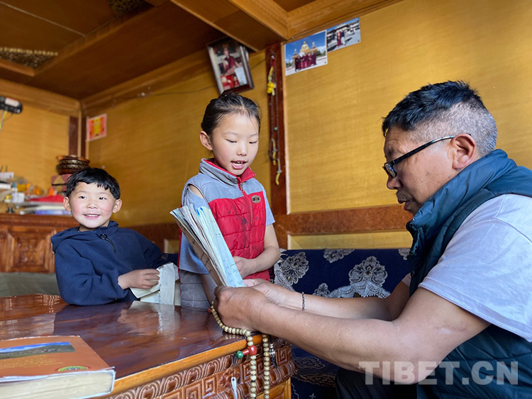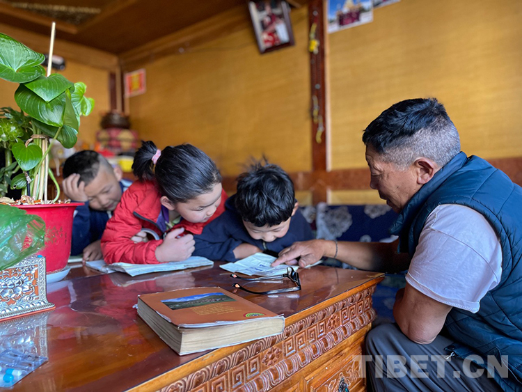 阿噶大爺自己粗通藏文,能督促和檢查藏文作業(yè),孩子們則非常享受爺爺驗(yàn)收他們的學(xué)習(xí)成果,每次都爭(zhēng)先恐后地請(qǐng)爺爺聽(tīng)自己的發(fā)音和背誦是否準(zhǔn)確。平時(shí)老師還會(huì)安排上網(wǎng)課,因此不會(huì)耽誤他們的學(xué)業(yè)。