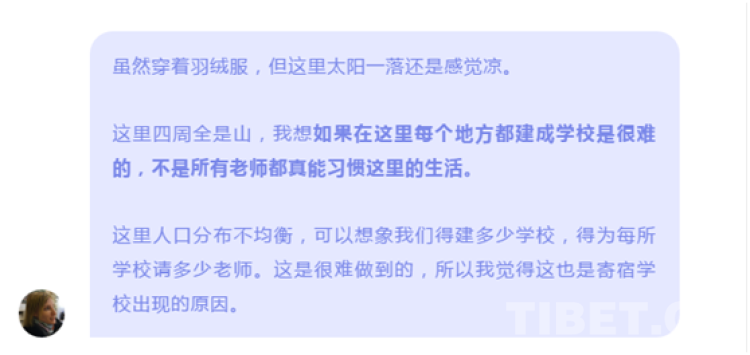 學(xué)生們在學(xué)習(xí)漢語、英語等不同科目的同時,學(xué)校對藏族傳統(tǒng)文化的存續(xù)依然不遺余力,給了孩子們拓展視野的鑰匙,讓他們有機(jī)會探索更寬廣的世界,這些不就是教育的意義嗎?何來“同化”?