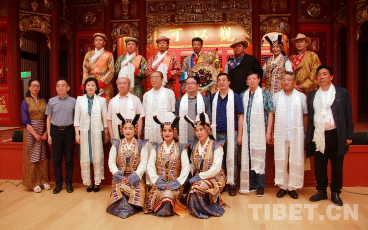 圖為西藏自治區(qū)拉薩市城關區(qū)娘熱民間藝術團的藝術家們與“戲舞雪域——多元文化視野中的藏戲藝術推廣研討會”專家合影 攝影:劉莉