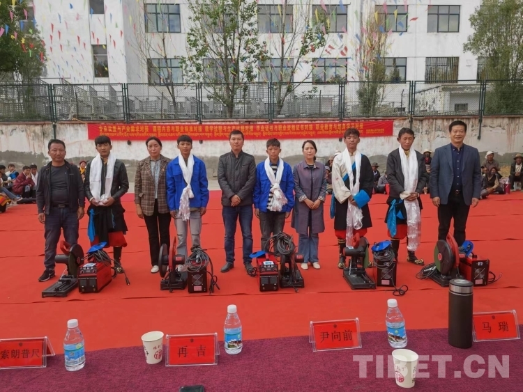 圖為學(xué)校為電焊專業(yè)的學(xué)生贈送電焊工具