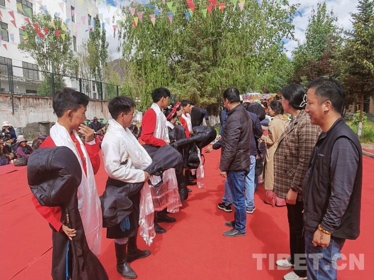 活動現(xiàn)場,學(xué)生家長代表向?qū)W校贈送錦旗并發(fā)表感言。“感謝拉孜縣9+X中職學(xué)校培養(yǎng)了我的孩子,經(jīng)過學(xué)校的精心培養(yǎng),讓家人操碎心的孩子如今依靠從學(xué)校學(xué)到的技藝找到了一份滿意的工作,這讓我一家人感到很欣慰?!睂W(xué)生家長代表白瑪有感而發(fā),“希望在場的孩子們也通過發(fā)揮自己的優(yōu)勢,在社會上找到一份心儀的工作,同時真心祝福學(xué)校越辦越好。”