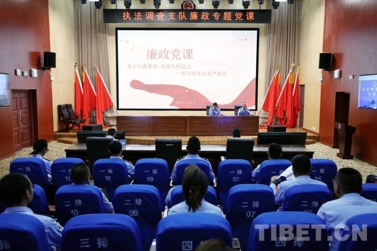 圖為西藏邊檢總站執(zhí)法調(diào)查支隊(duì)黨委副書記、政治委員為全體民警講授廉政專題黨課 攝影:仁青旺堆