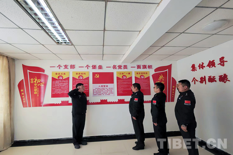 圖為西藏邊檢總站執(zhí)法調(diào)查支隊(duì)民警重溫入黨誓詞 攝影:李渠成