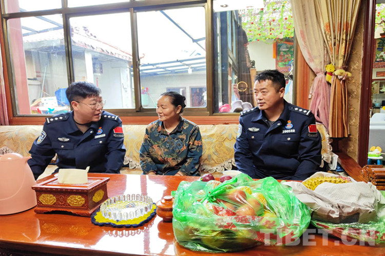 圖為西藏邊檢總站執(zhí)法調(diào)查支隊(duì)民警看望慰問轄區(qū)黨員群眾 攝影:李渠成