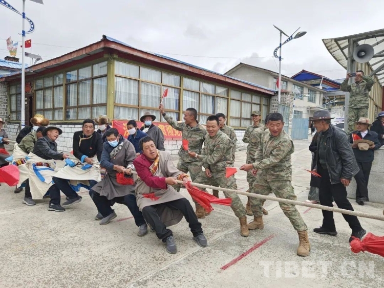 圖為帕里鎮(zhèn)二社區(qū)開展慶“七一”拔河比賽