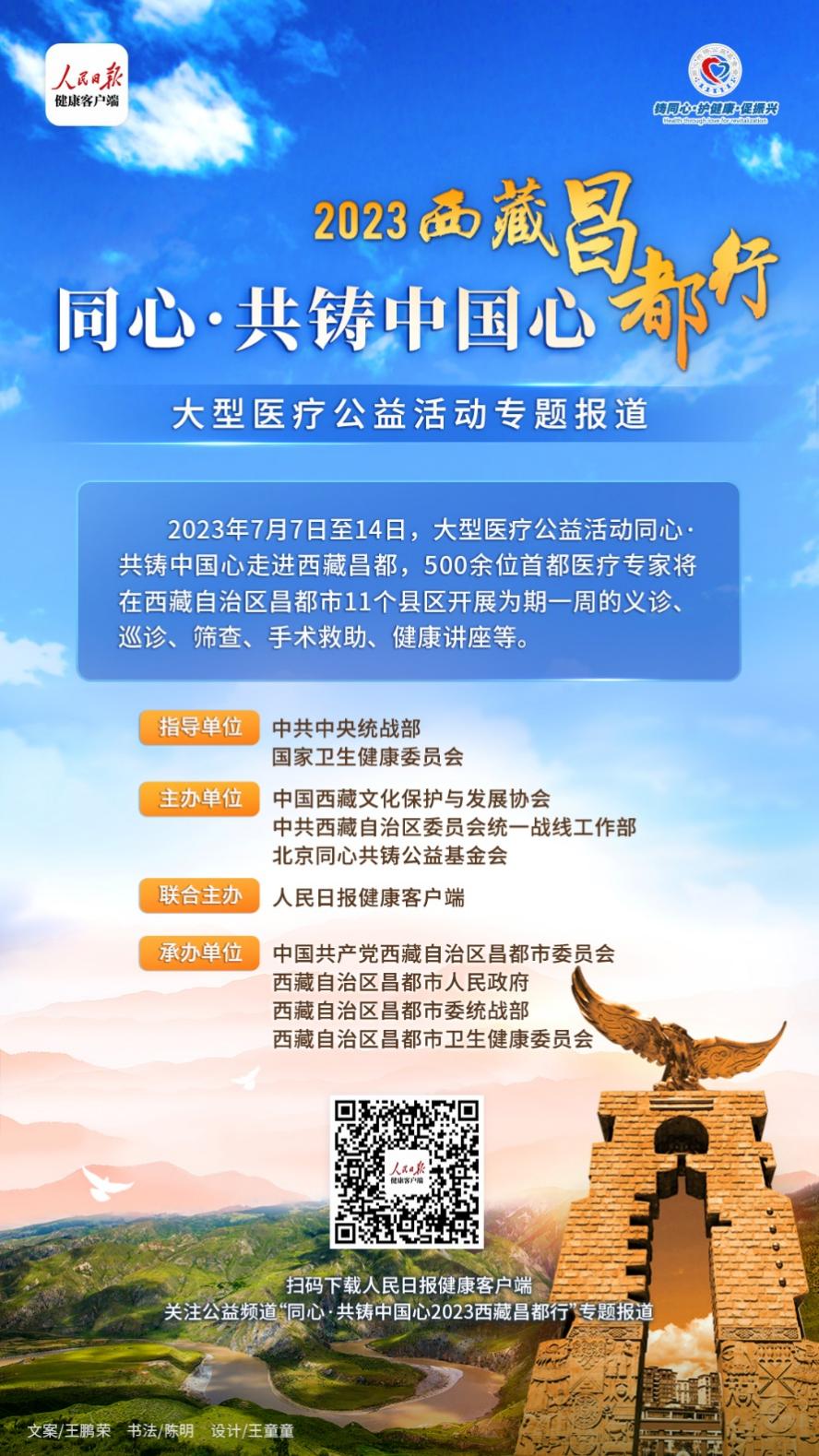 中國西藏網(wǎng)訊 “同心向黨·共鑄明天——‘同心·共鑄中國心’2023西藏昌都行”將于7月8日在西藏自治區(qū)昌都市卡若區(qū)解放廣場啟動,屆時將有來自首都206家醫(yī)療單位的502位醫(yī)務(wù)志愿者,為當(dāng)?shù)?1個區(qū)縣開展為期一周的健康公益服務(wù)。