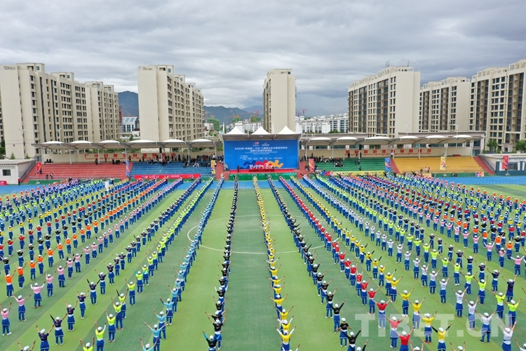 圖為2023年“奔跑吧?少年”兒童青少年主題健身活動(dòng)西藏分會(huì)場(chǎng)啟動(dòng)儀式現(xiàn)場(chǎng) 攝影:旦曲