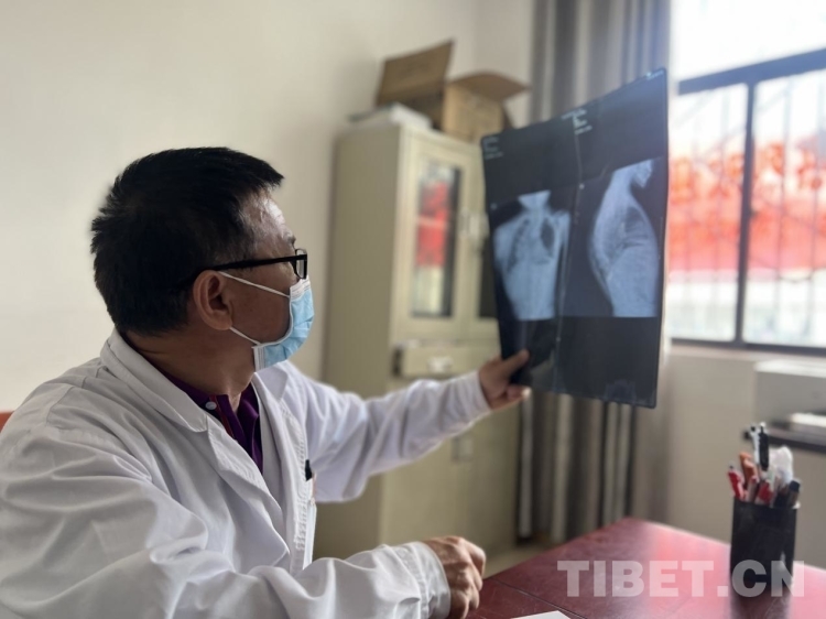 圖為北京海淀區(qū)清華大學校醫(yī)院的張新輝檢查桑丁之前做的CT片子攝影:德吉卓瑪