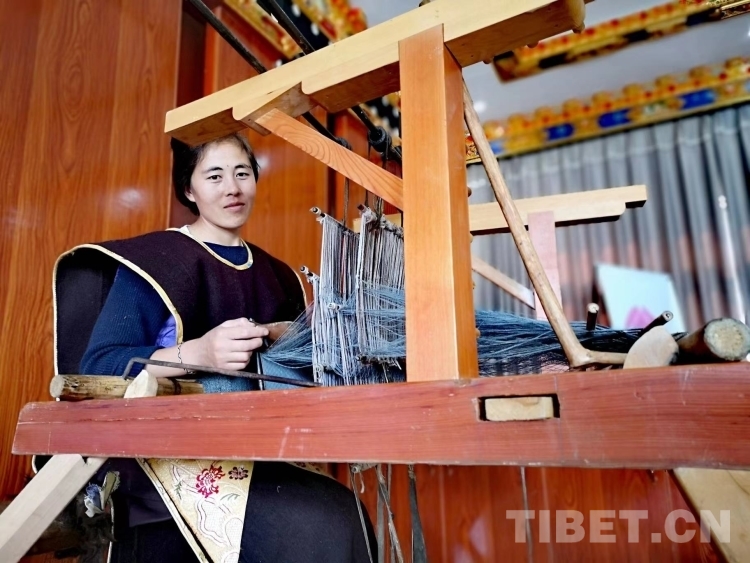 卡斯木村的很多婦女因?yàn)樾枰疹櫪先撕秃⒆?,幾乎沒(méi)有外出務(wù)工的可能,收入有限。直到2016年4月,村中的致富帶頭人桑杰措姆組織起了16名婦女開辦氆氌加工坊,大家的生活條件開始起了大變化,每名女工半年的收入就超過(guò)了萬(wàn)元。