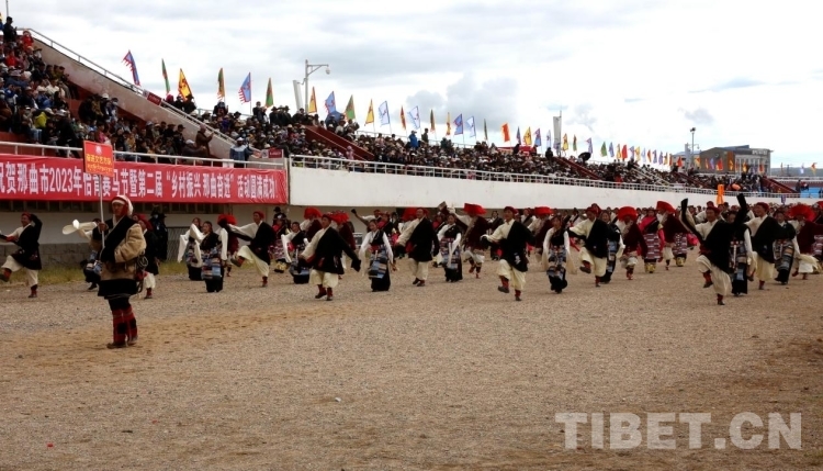 開(kāi)幕式以方隊(duì)入場(chǎng)儀式拉開(kāi)序幕,國(guó)旗方隊(duì)、會(huì)標(biāo)方隊(duì)、民兵方隊(duì)、“鄉(xiāng)村振興 那曲奮進(jìn)”冠軍代表方隊(duì)、文藝代表隊(duì)以及那曲11個(gè)縣區(qū)代表隊(duì)和馬術(shù)表演方隊(duì)依次入場(chǎng)。那曲各族干部群眾身著盛裝、載歌載舞,充分展示了藏北民族優(yōu)秀傳統(tǒng)文化以及新時(shí)代那曲各族人民幸福安康、奮發(fā)進(jìn)取的新風(fēng)采。