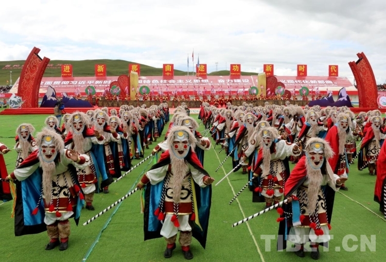 開(kāi)幕式文藝演出分為《草原飛歌》《奮進(jìn)那曲》《幸福歌聲》《吉祥鍋莊》四個(gè)章節(jié)。格薩爾說(shuō)唱和折嘎說(shuō)唱等西藏傳統(tǒng)藝術(shù)瑰寶、“鄉(xiāng)村振興 那曲奮進(jìn)”活動(dòng)中涌現(xiàn)出的優(yōu)秀文藝作品、西藏自治區(qū)內(nèi)外著名歌手歌曲連唱、那曲各族人民共跳歡快鍋莊等悉數(shù)登場(chǎng),帶動(dòng)開(kāi)幕式現(xiàn)場(chǎng)氣氛到達(dá)高潮。