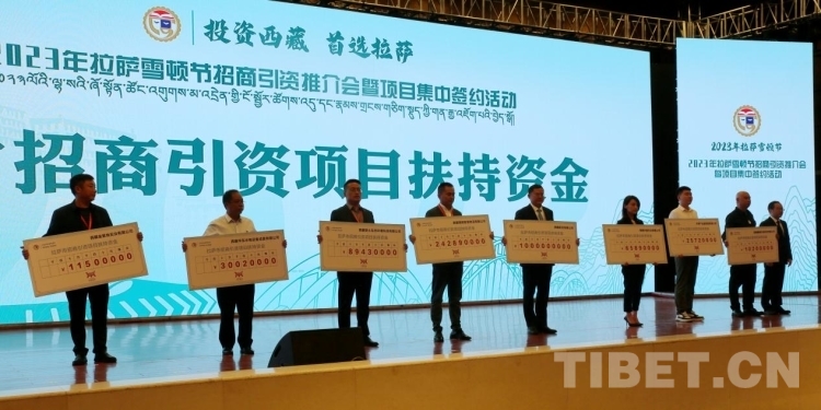 除項目集中簽約外,拉薩市首批招商引資項目扶持資金兌付儀式同樣引人矚目。