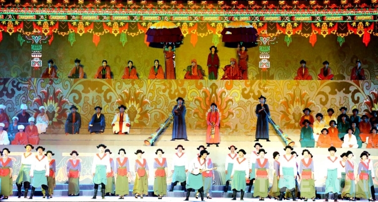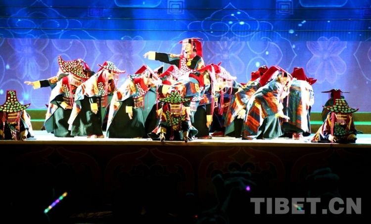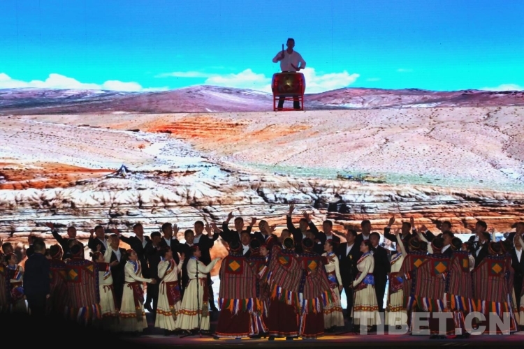 隨后盛大的開(kāi)幕式文藝演出如期而至。演出共分為《悠遠(yuǎn)古韻》《詩(shī)意微芒》《如炬經(jīng)典》《輝煌盛世》四個(gè)篇章?!队七h(yuǎn)古韻》篇章為大型情景表演,結(jié)合古格壁畫(huà)為開(kāi)場(chǎng)表演,展現(xiàn)出阿里人民群眾的精神面貌和獨(dú)特的阿里神韻?!对?shī)意微芒》匯集阿里地區(qū)諸多極具代表性的國(guó)家級(jí)非物質(zhì)文化遺產(chǎn)節(jié)目,展現(xiàn)阿里地區(qū)悠久燦爛的古代文明遺存。《如炬經(jīng)典》篇章通過(guò)不同舞蹈,展現(xiàn)阿里獨(dú)具特色的民間歌舞文化?!妒⑹老腋琛穭t展現(xiàn)了阿里地區(qū)以熱情昂揚(yáng)的姿態(tài)在全力以赴推動(dòng)建設(shè)雪域高原“西部明珠”中取得的一系列可喜的成績(jī)。