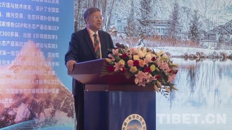 論壇上,第二次青藏高原綜合科學(xué)考察研究隊隊長,中國科學(xué)院青藏高原研究所名譽所長姚檀棟院士作了《第二次青藏高原綜合科學(xué)考察研究階段性成果服務(wù)西藏創(chuàng)建國家生態(tài)文明高地》的主旨報告。全國政協(xié)常委、人口資源環(huán)境委員會副主任,生態(tài)環(huán)境部環(huán)境規(guī)劃院院長王金南院士做了《建設(shè)美麗中國的西藏樣板,打造國際生態(tài)文明新高地》的主旨報告。