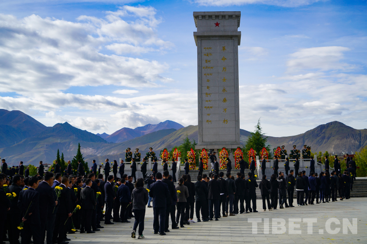 圖為西藏自治區(qū)黨政軍領(lǐng)導同全區(qū)各族各界干部群眾代表一起,出席向烈士敬獻花籃儀式。 攝影:趙振宇