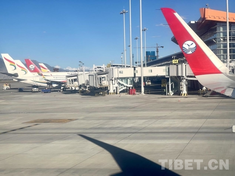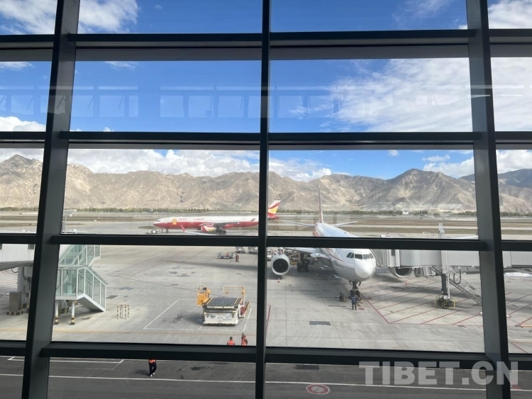 圖為拉薩貢嘎機場停機坪中等待出港的航班 攝影:趙振宇