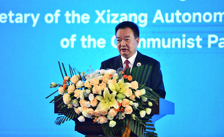 西藏自治區(qū)黨委書(shū)記王君正致辭,西藏自治區(qū)黨委副書(shū)記、自治區(qū)主席嚴(yán)金海宣布論壇開(kāi)幕。