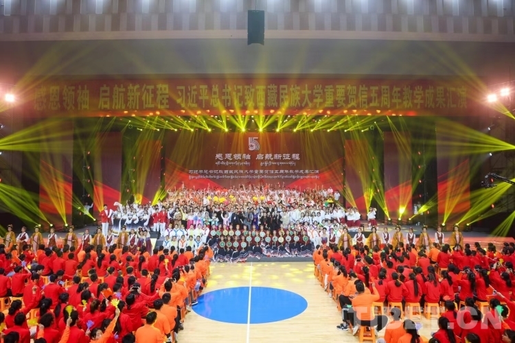 圖為習(xí)近平總書記致西藏民族大學(xué)重要賀信五周年教學(xué)成果匯演現(xiàn)場(chǎng)