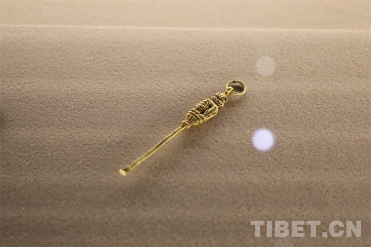 圖為西藏拉薩當(dāng)雄墓地出土的雄獅鳥紋金耳勺(唐代),雖已過千年仍熠熠生輝 攝影:楊月云