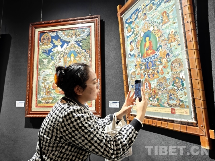 圖為現(xiàn)場(chǎng)觀眾拍攝唐卡作品