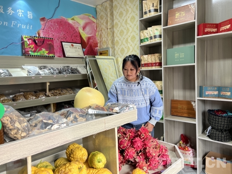 在墨脫縣德興鄉(xiāng)德興村村民西繞措姆的店里,我們看到了整齊擺放的火龍果、香蕉等熱帶水果。在整個(gè)墨脫縣,他們夫妻兩人是第一家,也是唯一一家規(guī)范種植火龍果的農(nóng)戶?!澳莻€(gè)時(shí)候我老公剛大學(xué)畢業(yè),在短視頻上看到有人在種火龍果,他就從網(wǎng)上買(mǎi)了火龍果苗,自己看著視頻學(xué)習(xí)種植。”2020年夫妻兩人迎來(lái)了第一個(gè)火龍果收獲季,2022年他們獲得政府民生實(shí)事扶持大學(xué)生資金30萬(wàn)元,種植規(guī)模也擴(kuò)大到了23畝。
